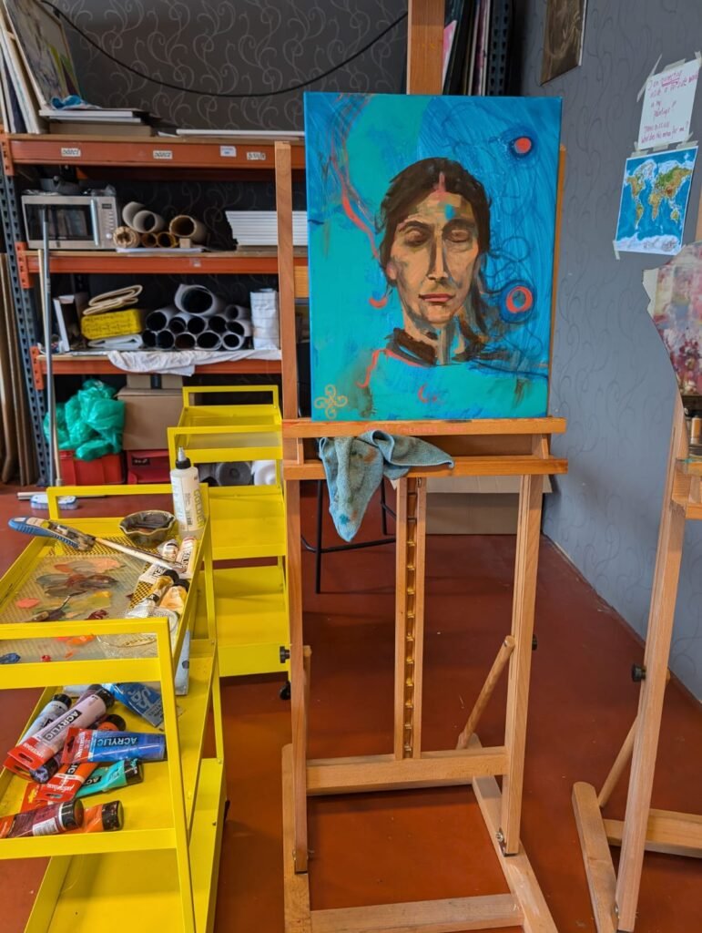 Tijdens de sessie komen kleuren, vormen en bewegingen intuïtief naar boven. Je kunt worden uitgenodigd om rustig te zitten, te delen wat natuurlijk aanvoelt, of gewoon te zijn – er is geen vaste structuur en geen verwachtingen. Het portret ontstaat organisch, geleid door intuïtie, gevoeligheid en de unieke resonantie van het moment.
